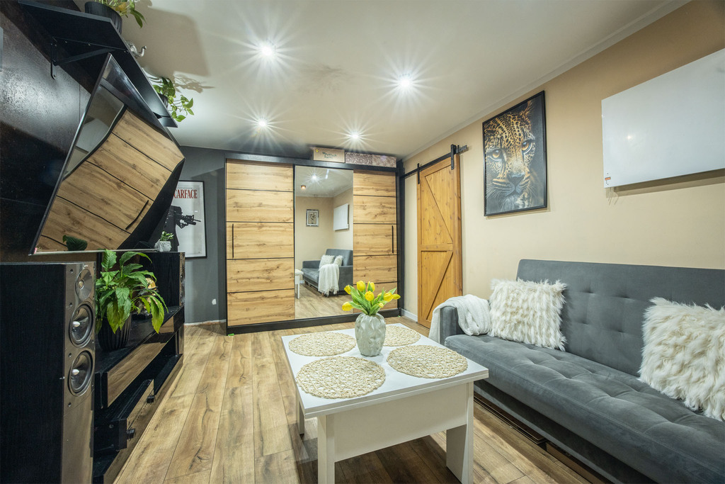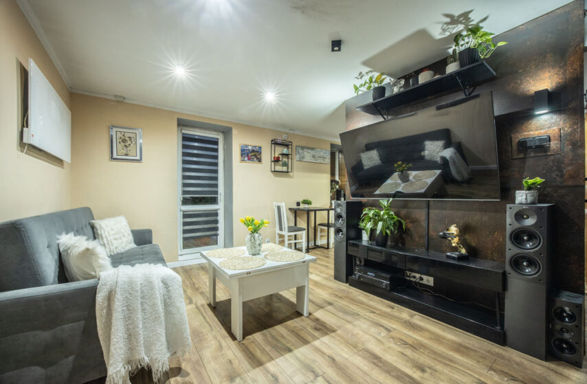 - Słoneczny salon z balkonem: Zachodnia ekspozycja okien sprawia, że popołudnia w mieszkaniu są wyjątkowo jasne i przyjemne. Balkon to idealne miejsce na chwilę oddechu.