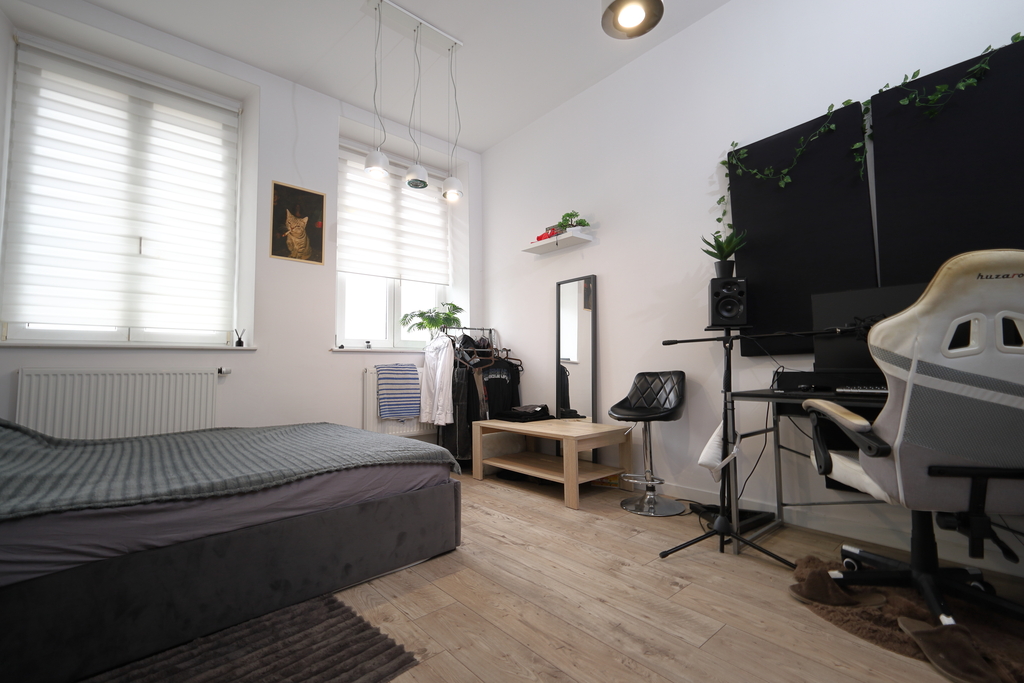 - dwa duże, ustawne pokoje – każdy z dwoma oknami