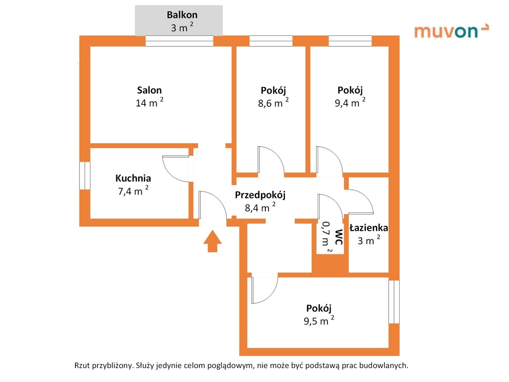 - salon: 14,3 m² + balkon 2 m² (ekspozycja wschodnia)