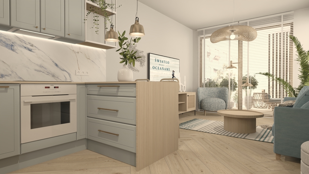 – Salon z aneksem kuchennym.