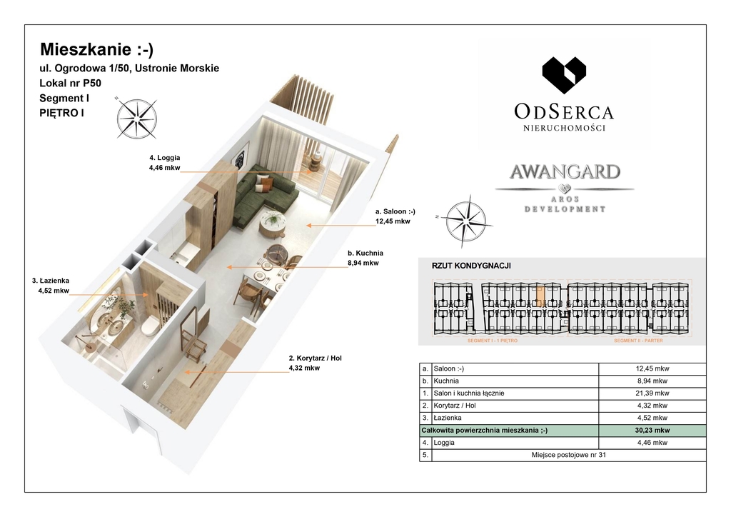 Na sprzedaż APARTAMENT P50 w inwestycji przy ulicy Ogrodowej 1 w Ustroniu Morskim.