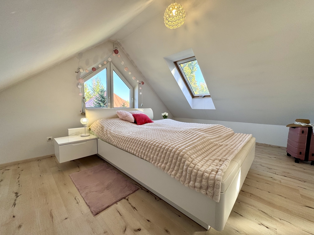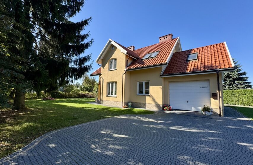 - Dodatkowe atuty – garaż w bryle budynku, parking, balkon oraz piękny ogród.