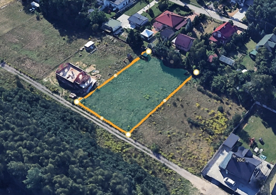 Działka ma regularny kształt, jest płaska, o wymiarach ok. 32 x 50 m. Dojazd zapewnia droga utwardzona, co gwarantuje komfortowy dostęp o każdej porze roku.