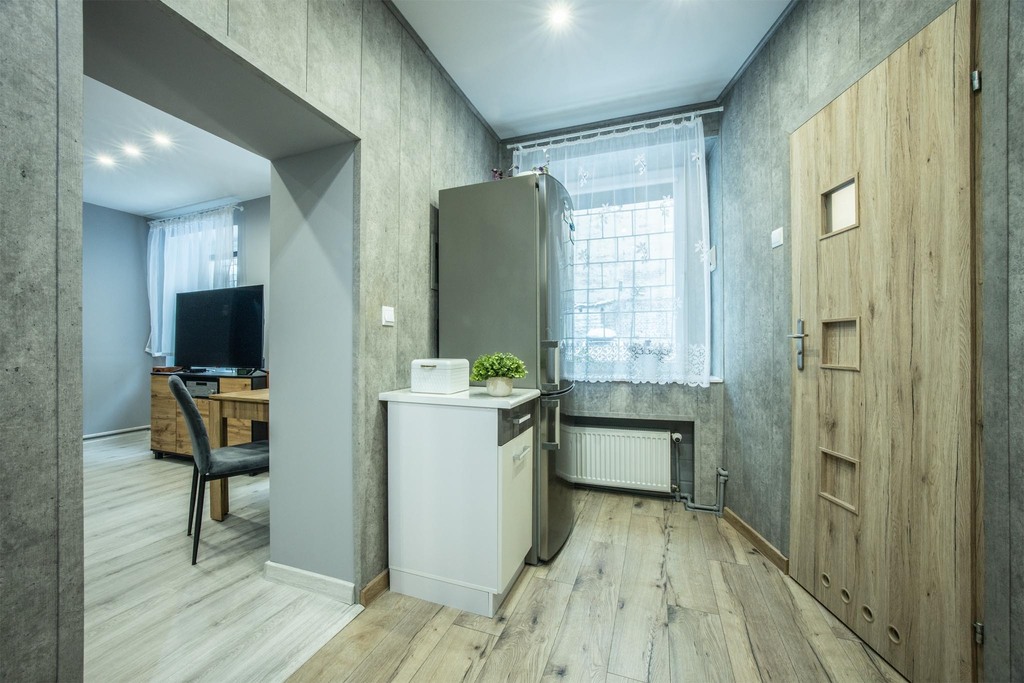 • Niezależne wejście od podwórka: Zapomnij o klatkach schodowych. Wchodzisz prosto do siebie, co daje poczucie mieszkania w małym domu w środku miasta.