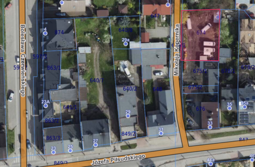 - Numer działki: 674, obręb 123, Zgierz