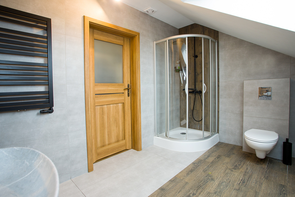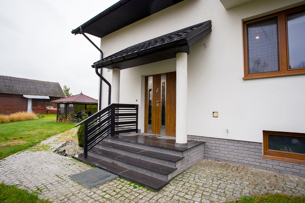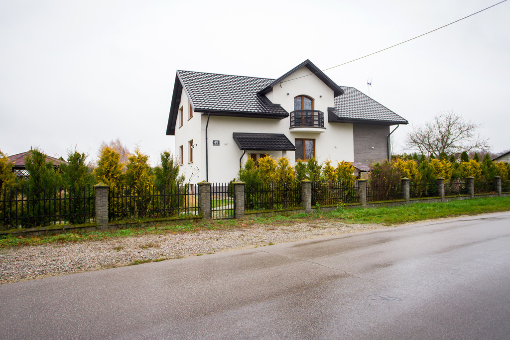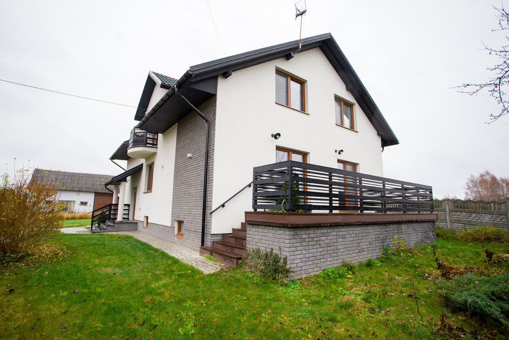 - Dom (247 m²): Parter to 111 m² z ogrzewaniem podłogowym, otwartą kuchnią i salonem. Piętro (92 m²) to 4 sypialnie i antresola. Wszystko na 3-szybowych oknach i energooszczędnych drzwiach.