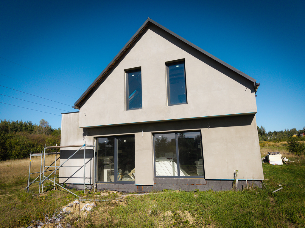 • Materiał budowlany: cegła THERMOTON 25 cm z ociepleniem fasady styropianowym.