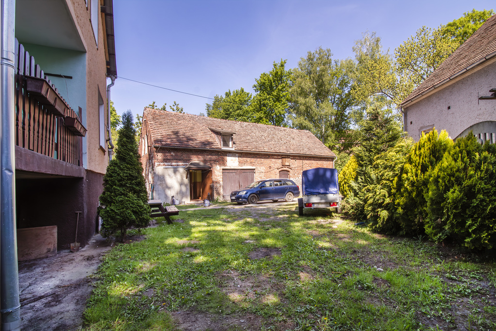 Na terenie nieruchomości znajdują się także zabudowania gospodarcze z garażem, które można wykorzystać według własnych potrzeb – na warsztat, przechowalnię lub przestrzeń do prowadzenia działalności.