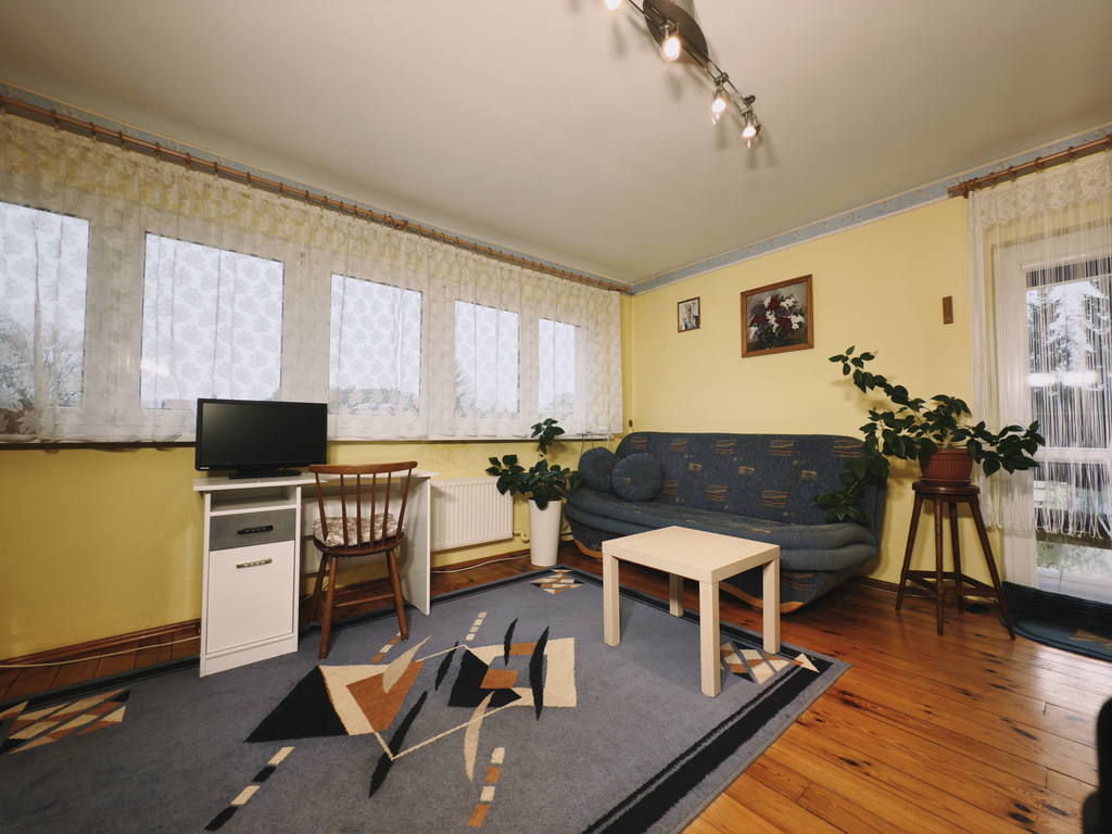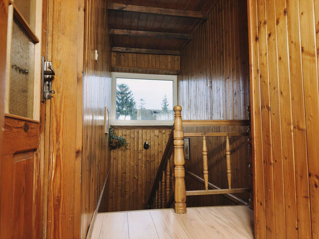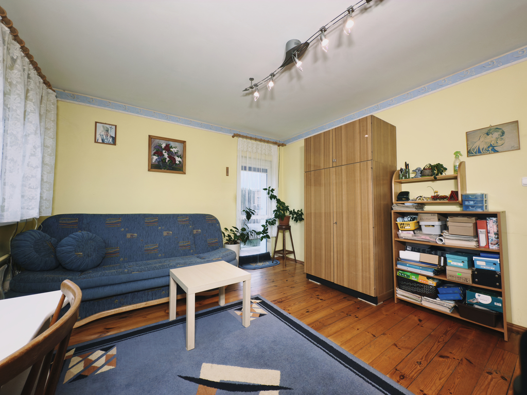 - parter: przestronny salon, kuchnia z jadalnią, dodatkowy pokój, łazienka oraz przedpokój z korytarzem prowadzącym na piętro