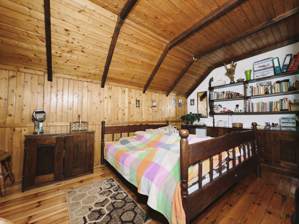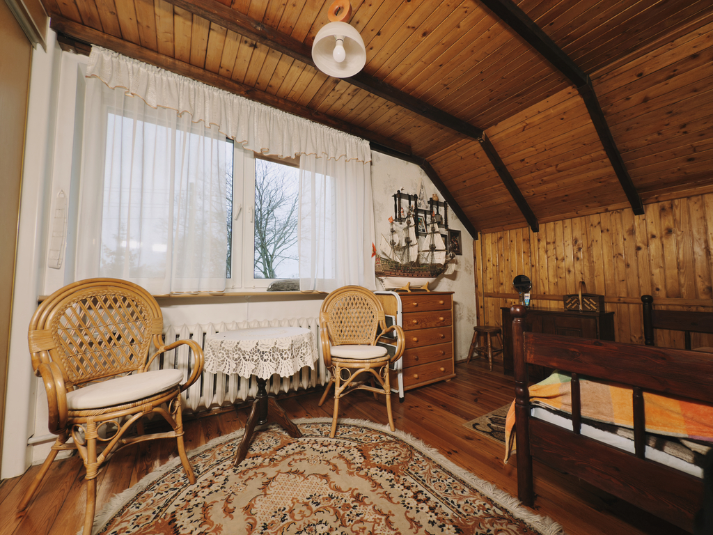 - piętro: dwa niezależne pokoje, w tym jeden z wyjściem na balkon, oraz druga łazienka z wanną – doskonałe miejsce na relaks po całym dniu