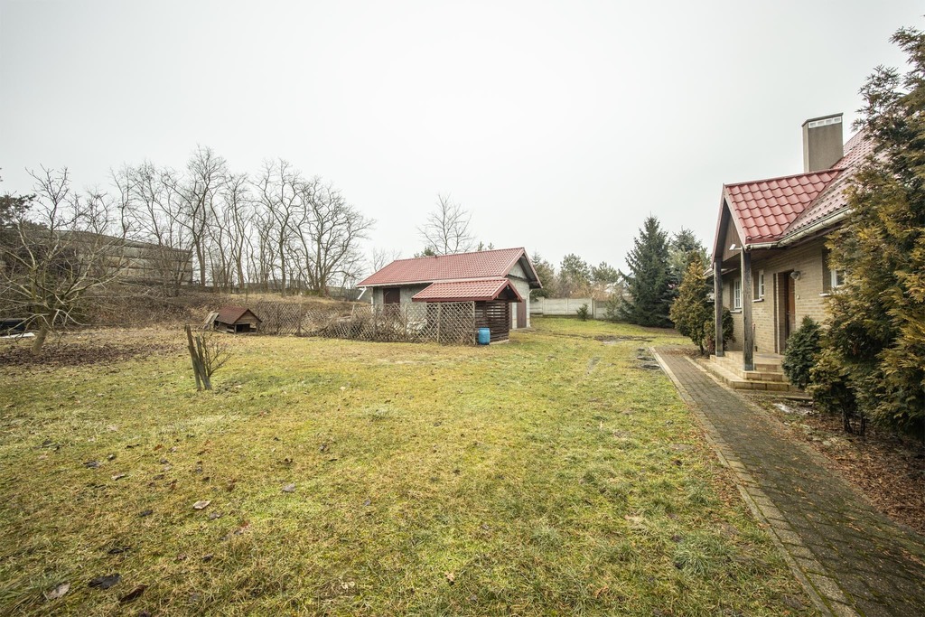 Przestrzeń, która daje wolność. Część budowlana (2300 m²) została starannie zagospodarowana nasadzeniami topoli, akacji oraz iglaków, tworząc naturalną barierę prywatności. Od frontu drewniany płot, z pozostałych stron ogrodzenie z siatki.