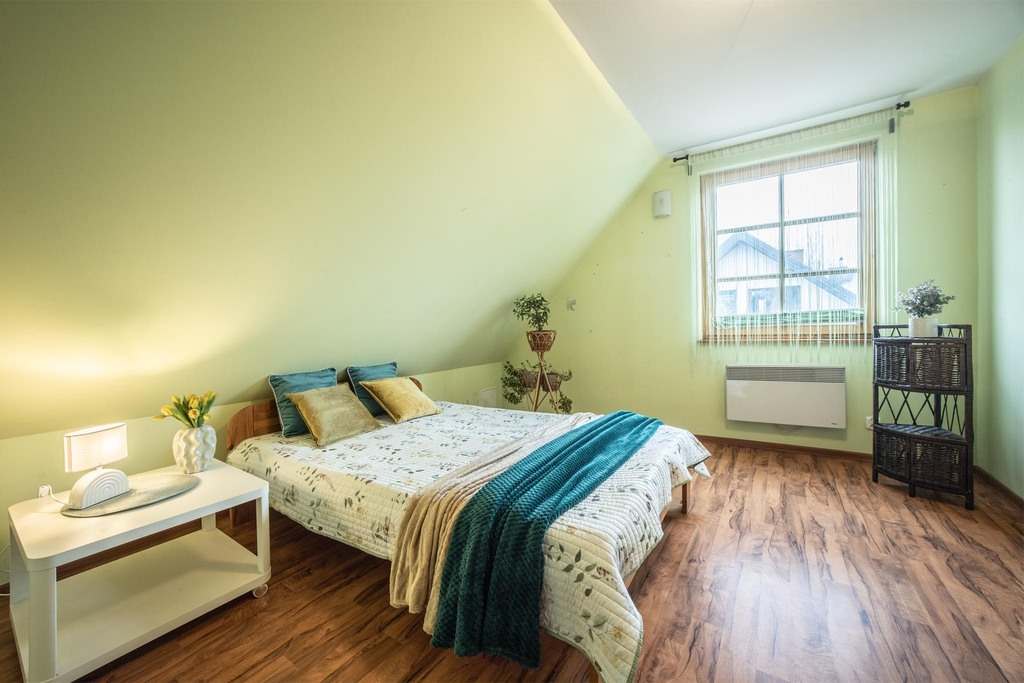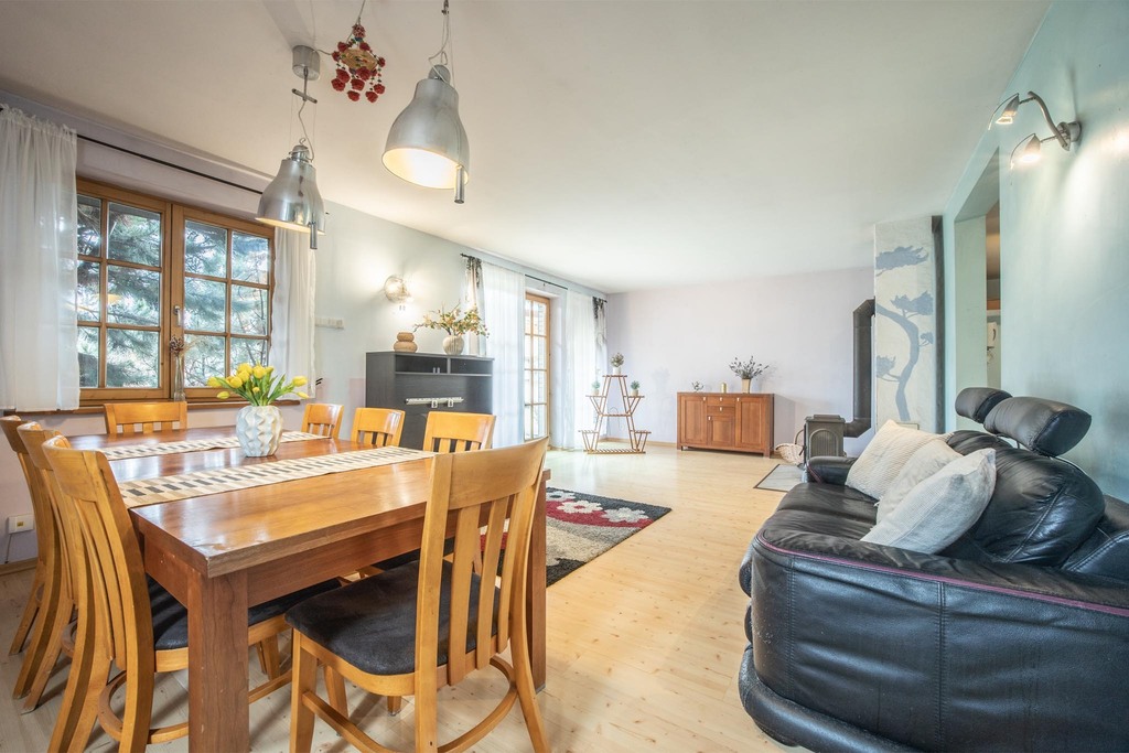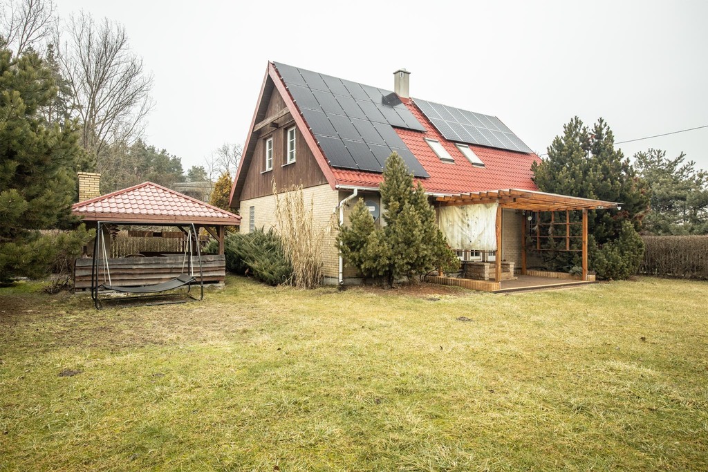 Solidnie ocieplony (20 cm wełny mineralnej w ścianach i dachu), energooszczędny i wyposażony w fotowoltaikę – łączy klimat tradycyjnego domu z nowoczesnymi rozwiązaniami.