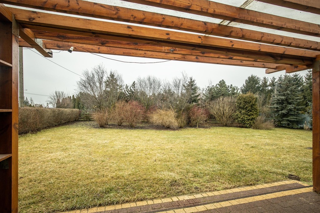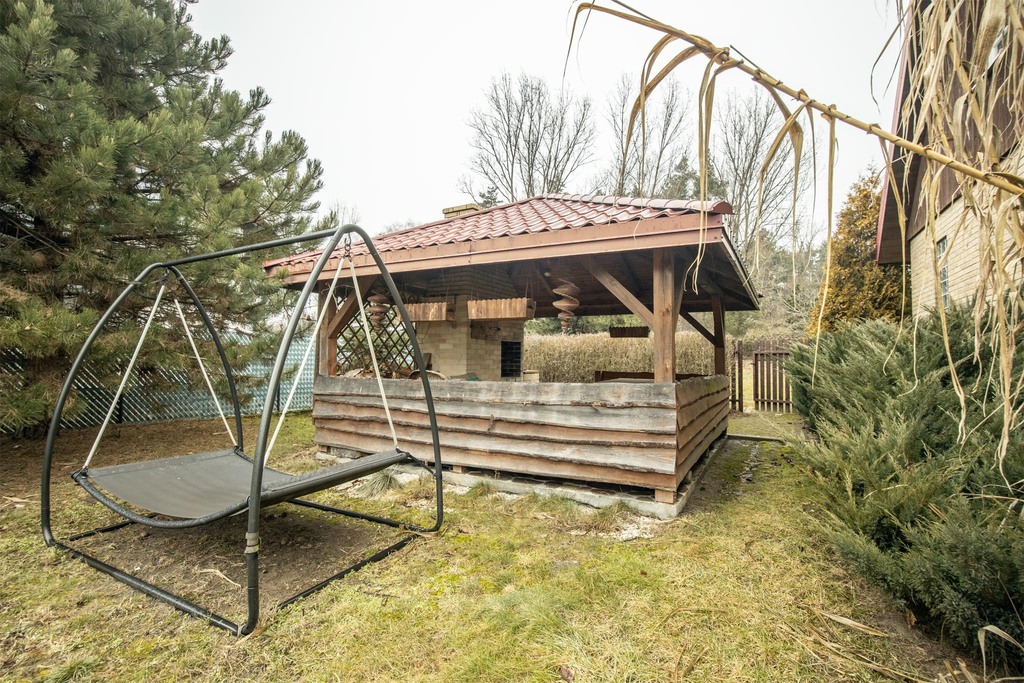 W ogrodzie altana z miejscem na grilla – gotowa na rodzinne spotkania i letnie wieczory z przyjaciółmi.