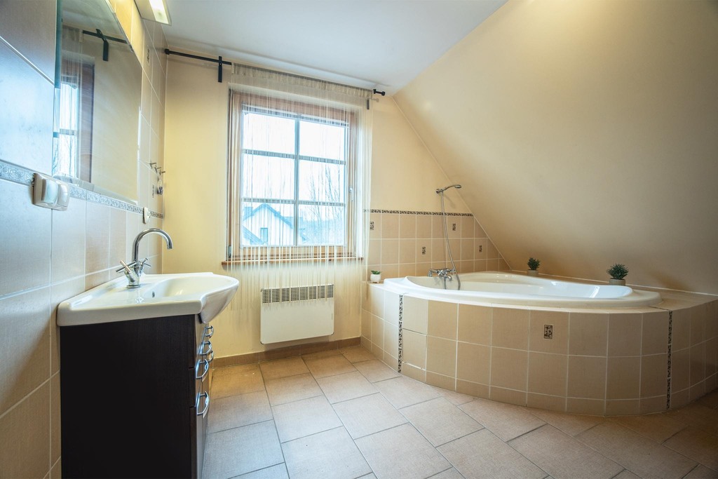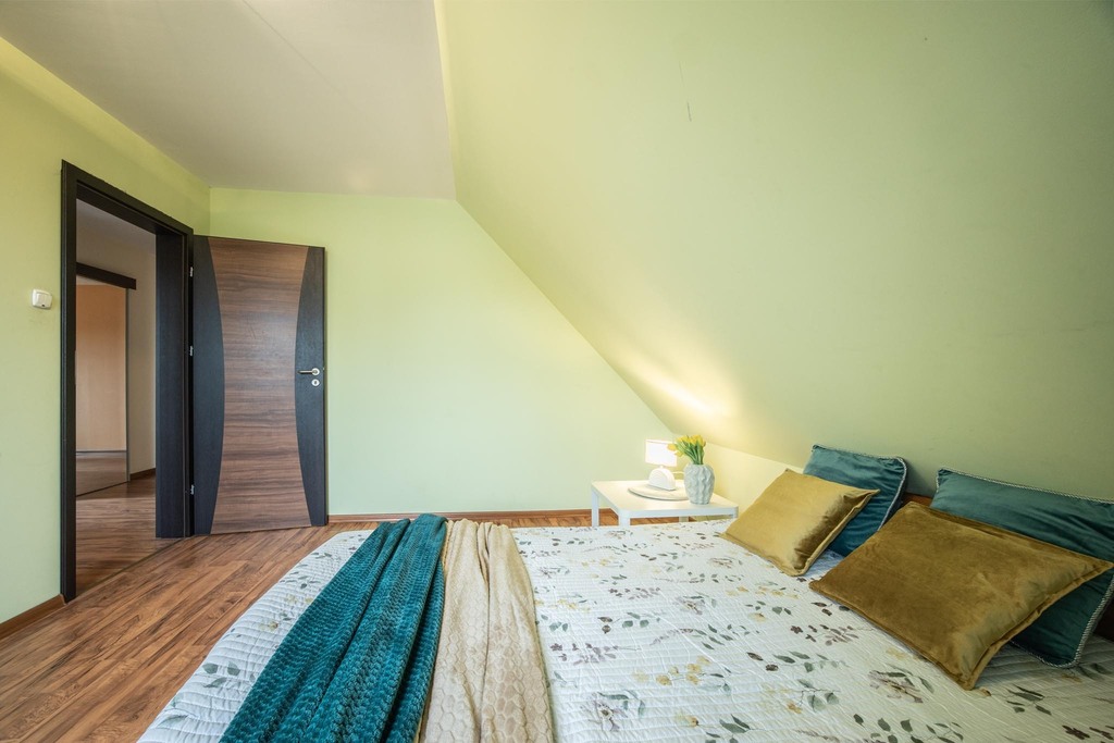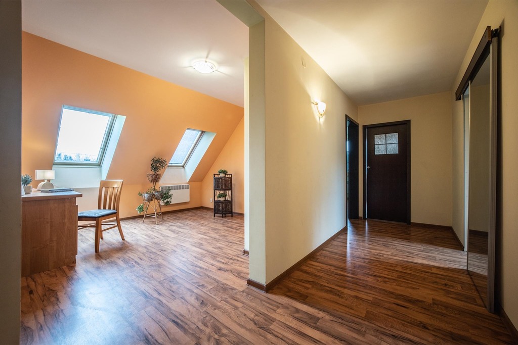 Dodatkowa przestrzeń – obok domu znajduje się duży garaż dwustanowiskowy – idealny nie tylko na samochody ale także warsztat czy przestrzeń hobby.