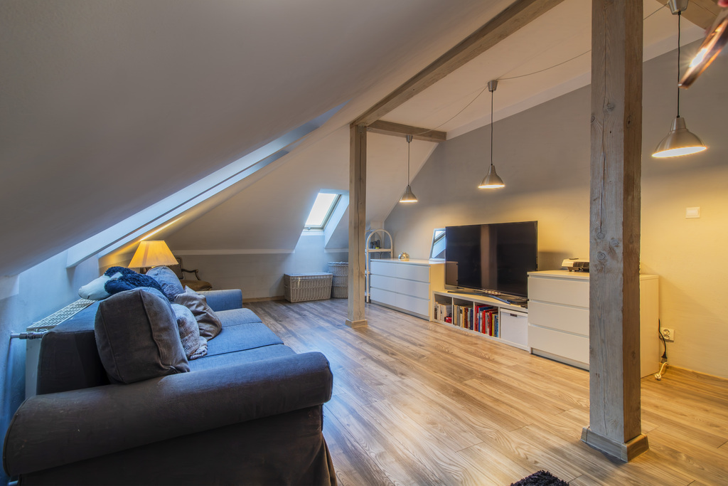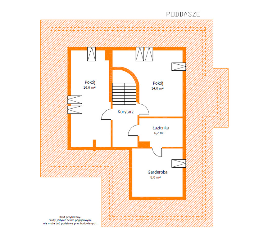 Na poddaszu znajduje się przytulny pokój (16,6 m²), sypialnia (14,0 m2) oraz łazienka (6,2 m²) z przejściem do ukrytego pomieszczenia, które może służyć za przechowalnię, garderobę lub saunę.
