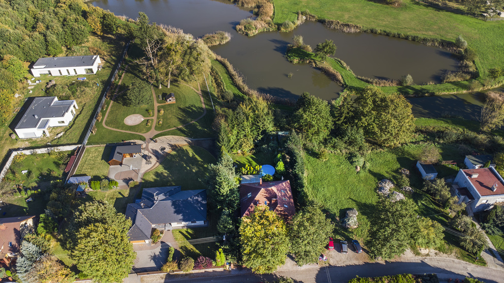Zaraz za ogrodem znajduje się staw, który pięknie wpisuje się w otoczenie.
