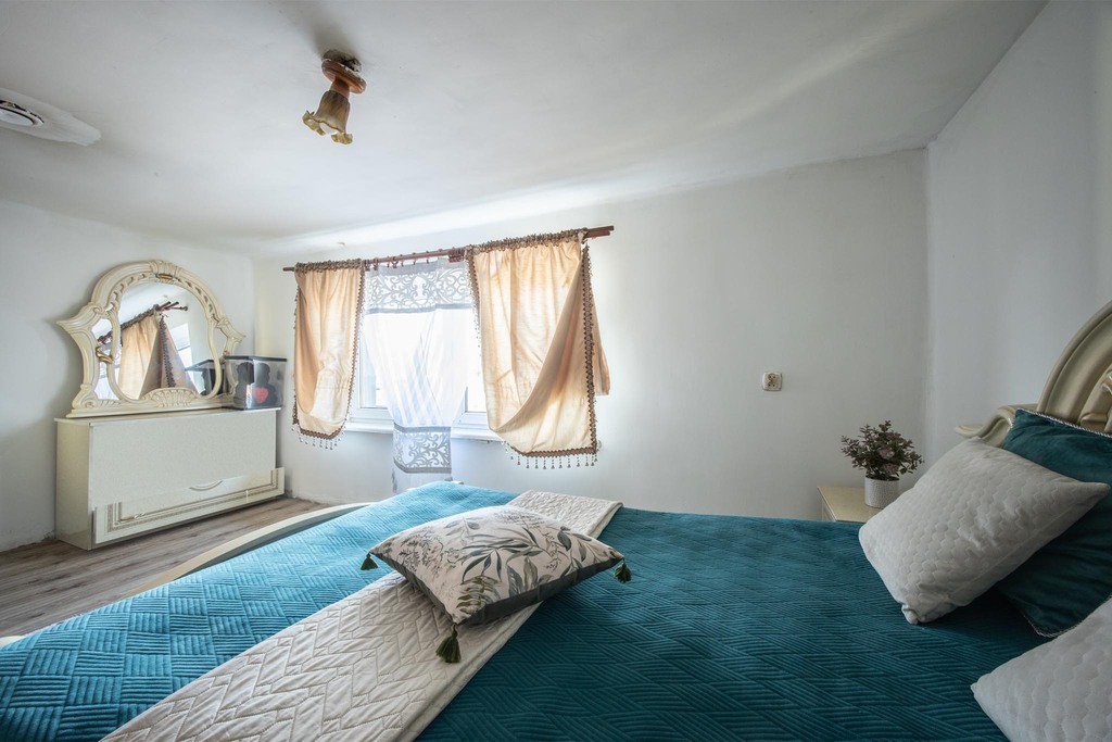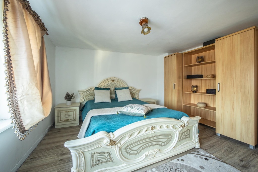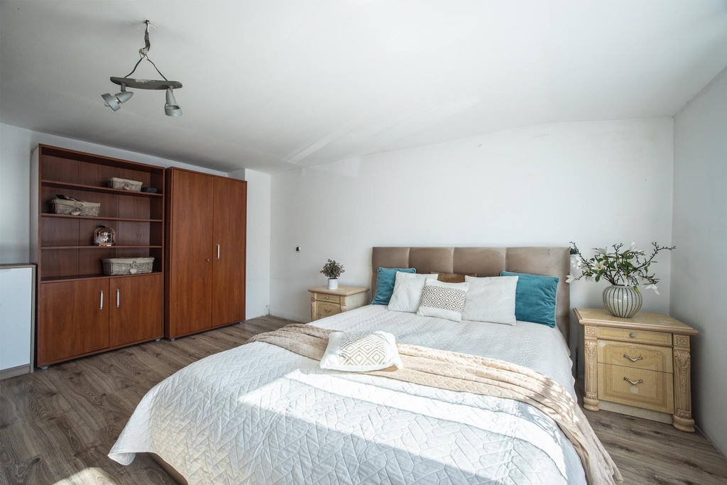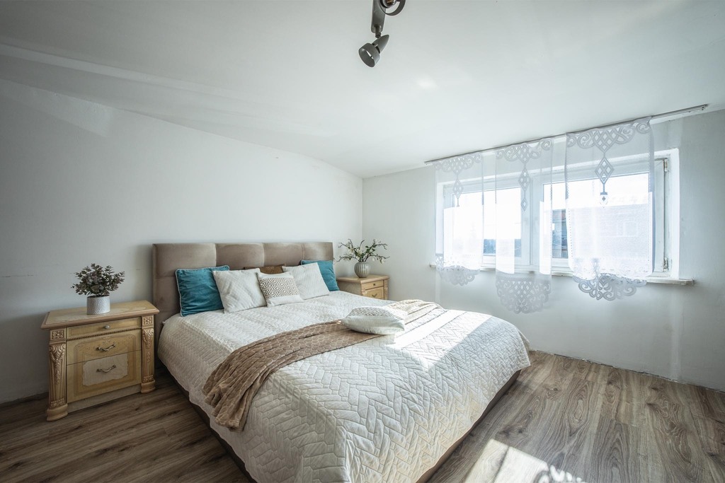 Wewnątrz domu znajduje się 5 ustawnych pokoi, które oferują komfortową przestrzeń nawet dla licznej rodziny. Sercem parteru jest widny, otwarty aneks kuchenny, który naturalnie łączy się z częścią dzienną, tworząc nowoczesną przestrzeń wspólną. Dom jest częściowo podpiwniczony, co zapewnia dodatkowe miejsce do przechowywania. Wnętrza są przygotowane do prac remontowych i wykończeniowych, co stanowi idealną okazję do stworzenia aranżacji w 100% dopasowanej do własnego stylu – bez konieczności kucia starych tynków czy demontażu niechcianych elementów