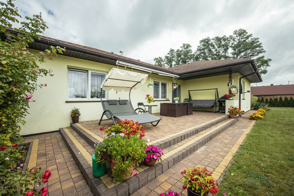 Na sprzedaż wolnostojący dom jednorodzinny o powierzchni 130 m2 usytuowany na dużej zielonej działce 1800 m2 – idealne miejsce dla rodziny szukającej spokoju.