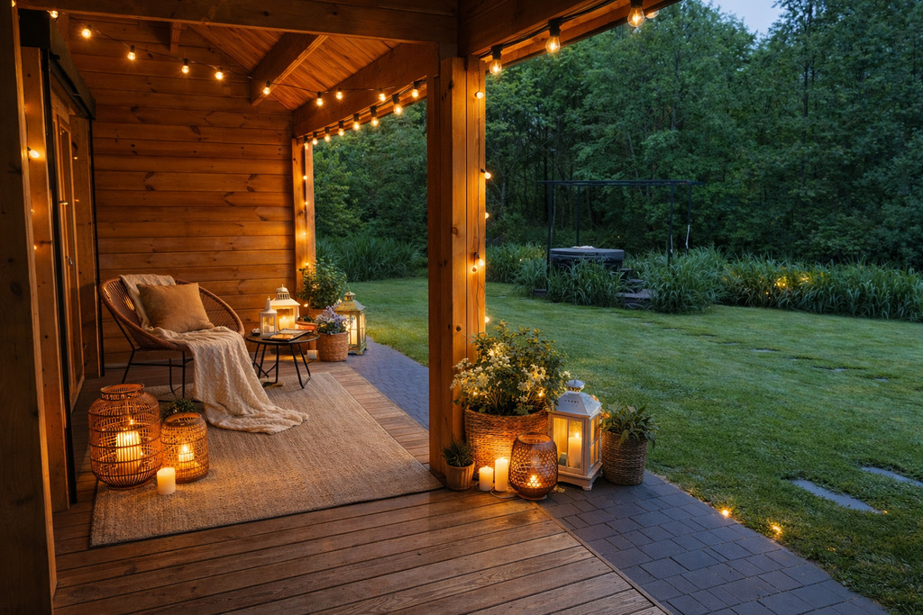 - zadaszony taras, idealny do wypoczynku o każdej porze roku.