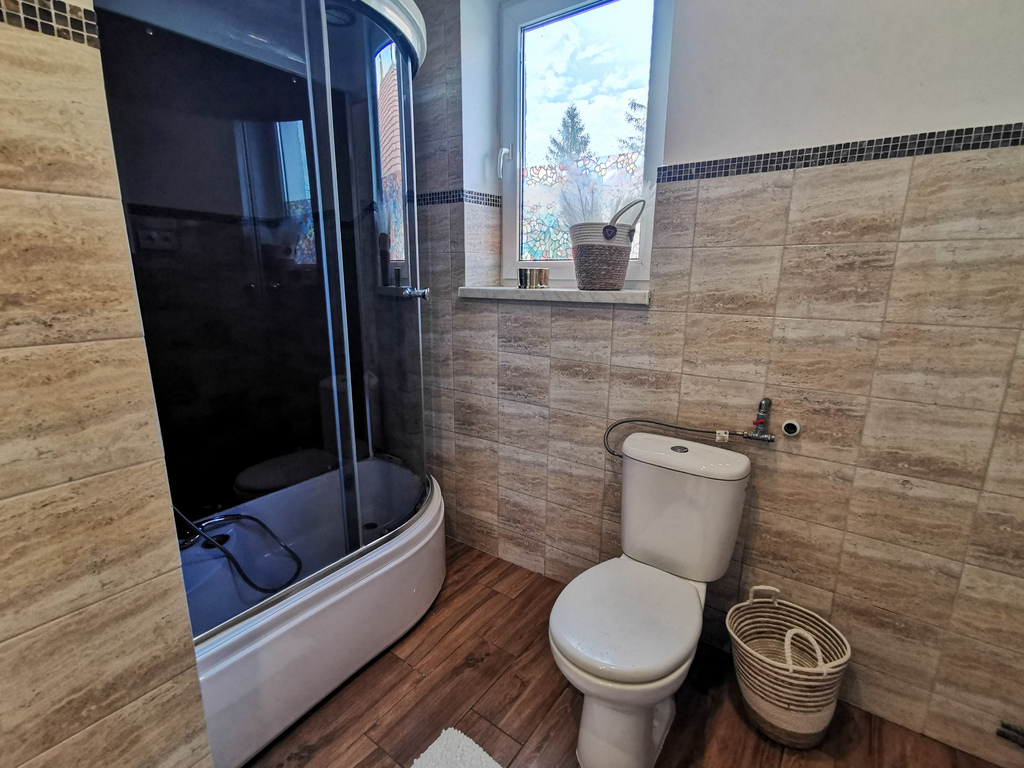 - Dach pokryty blachą, okna PCV i drewniane.