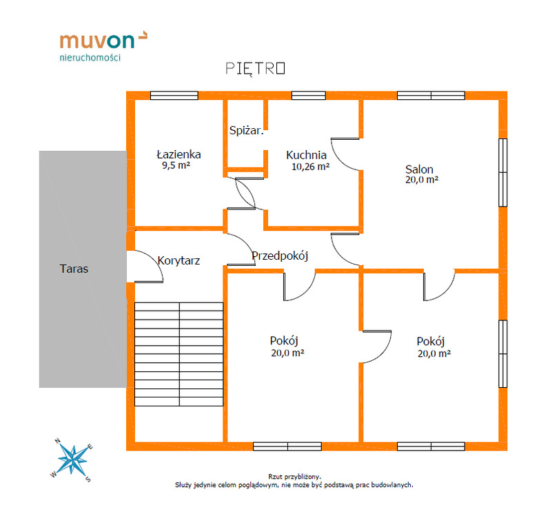 - Przestronny taras (ok. 10 m²).