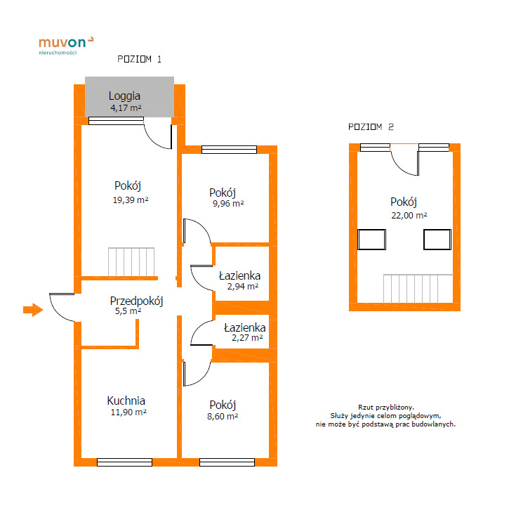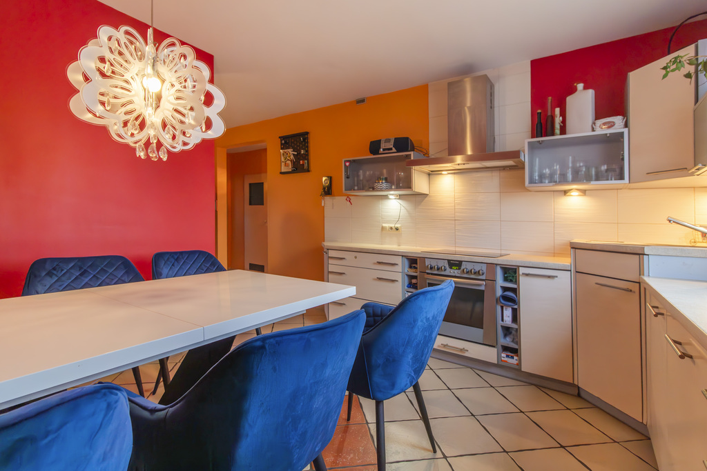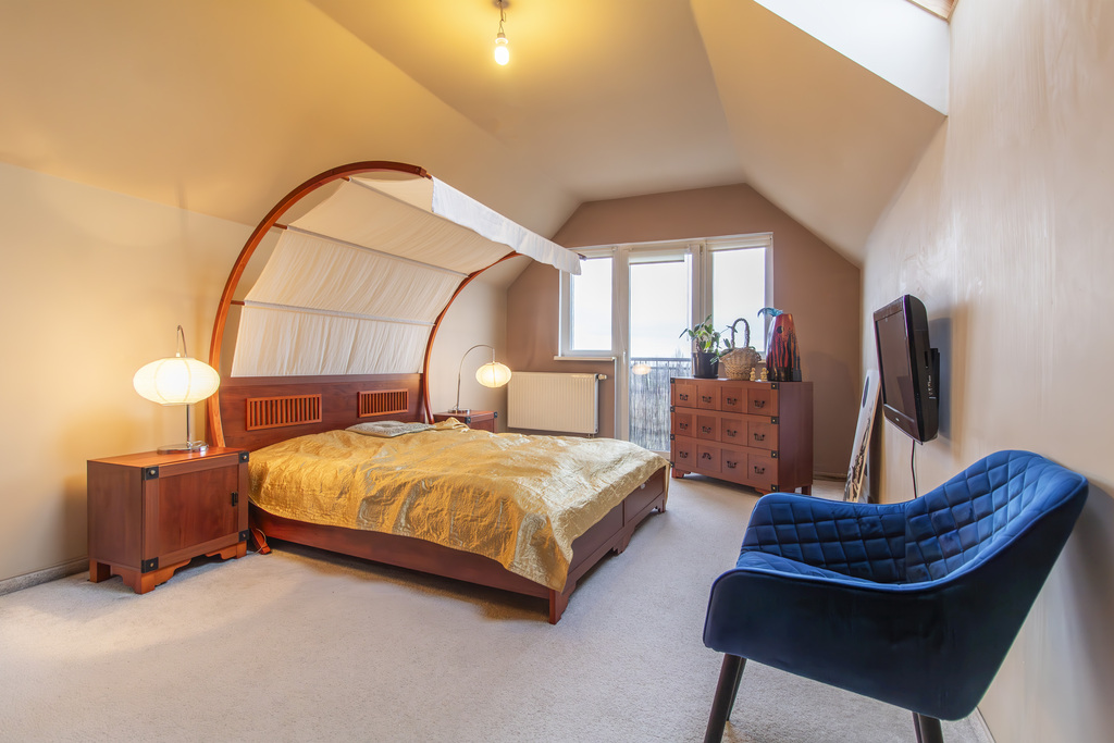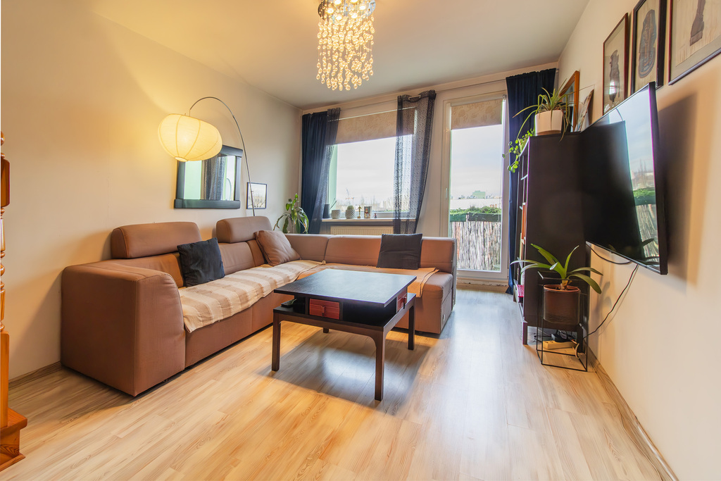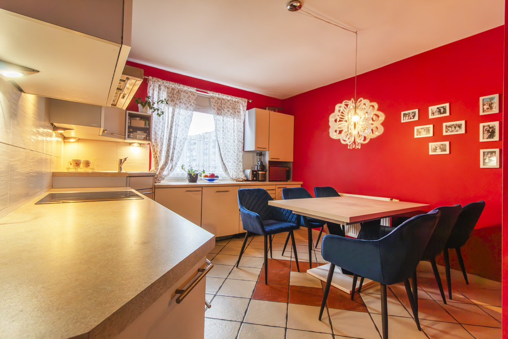 - Przemyślany układ – 4 niezależne pokoje, w tym duży salon, trzy sypialnie (jedna na drugim poziomie), osobna, jasna kuchnia i dwie łazienki.