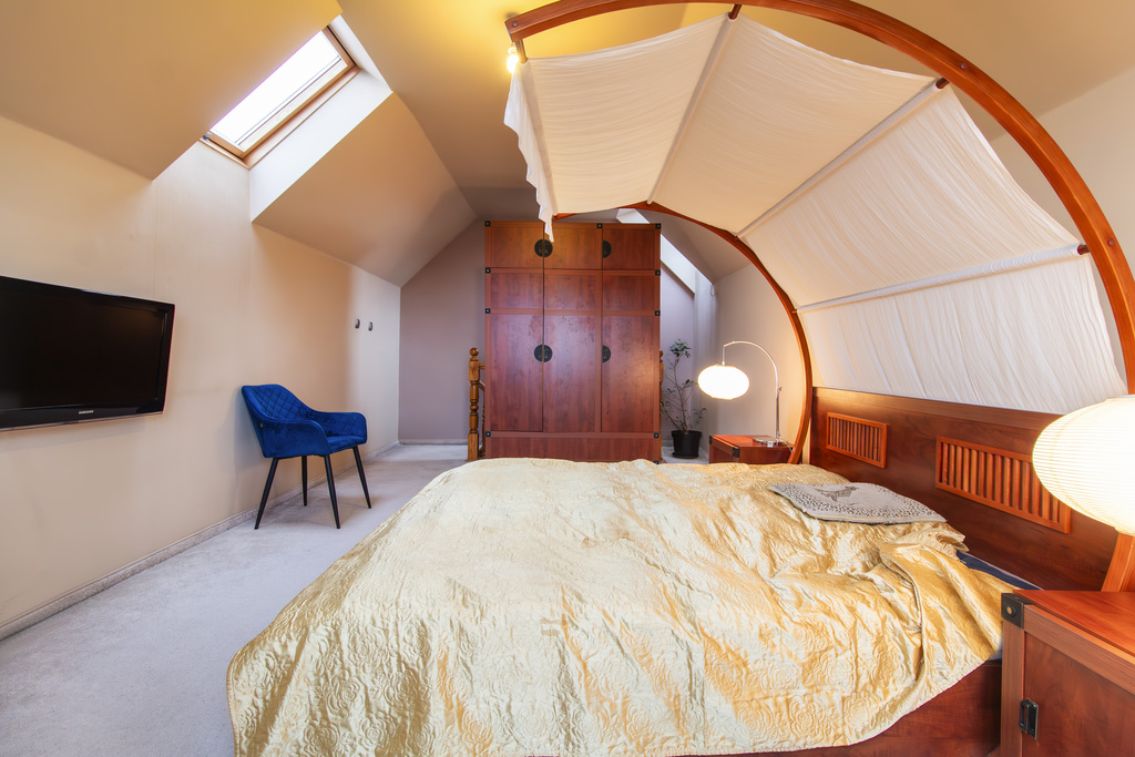 - Dwa poziomy – drugi poziom daje poczucie intymności i możliwości oddzielenia przestrzeni dziennej od prywatnej.
