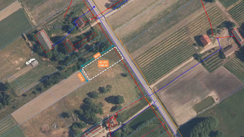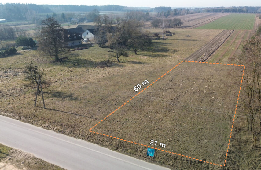 Nieruchomość ma powierzchnię 1300 m² o wymiarach 21 x 60 m.