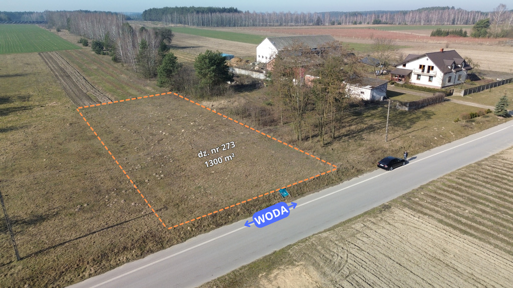 Działka ma bezpośredni dostęp do asfaltowej drogi gminnej. W drodze jest wodociąg oraz prąd.