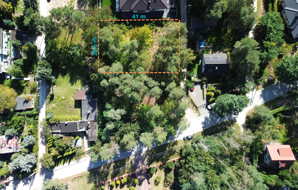 Powierzchnia działki: 1000 m² (wymiary: 24,5 m x 41 m).