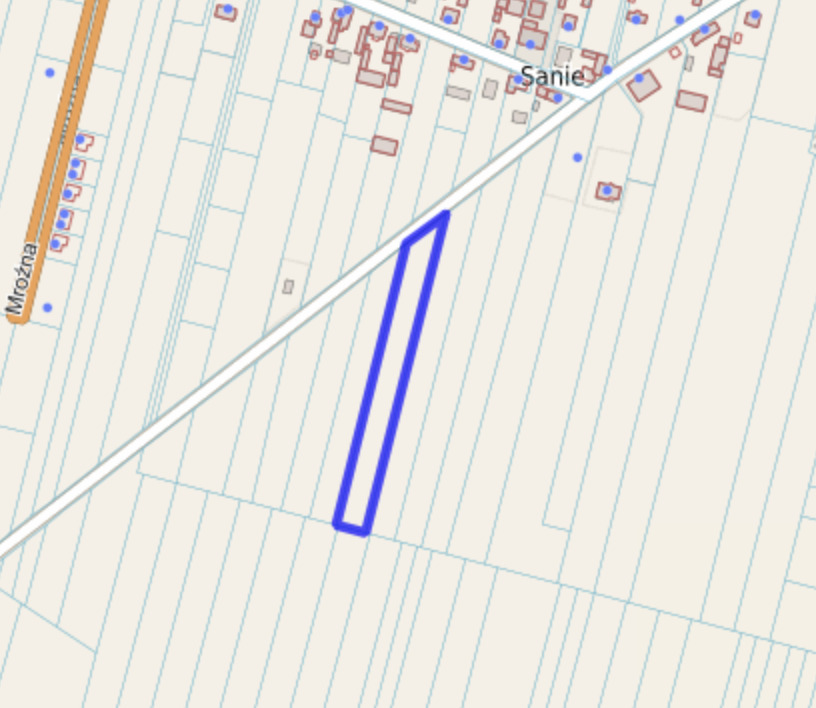 - Wymiary i kształt: Działka o długości aż 250 metrów i szerokości 24 metrów daje szerokie pole do popisu przy planowaniu wymarzonego domu z dala od głównej drogi.