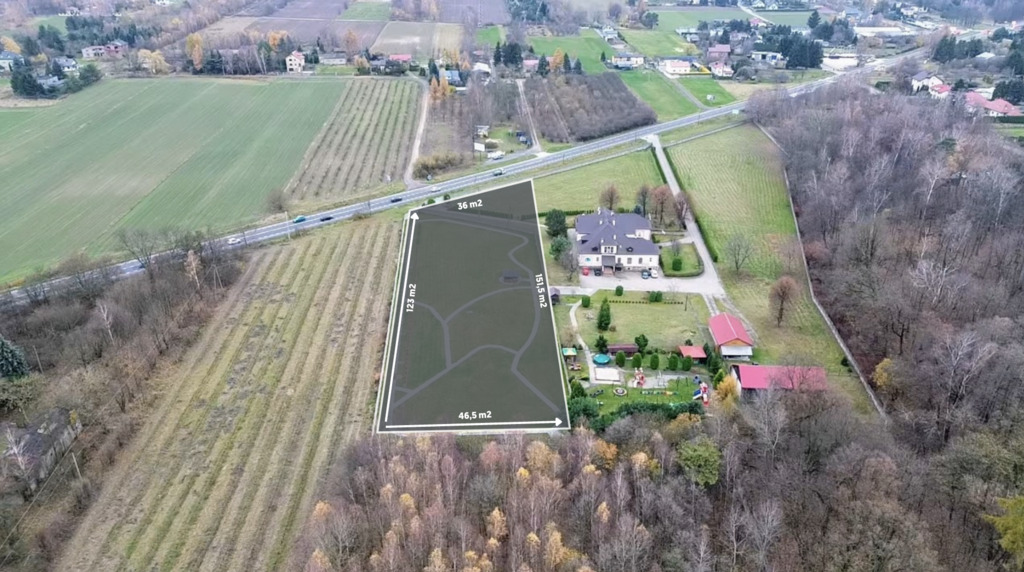 Przyległy las (ok. 1,5 ha) stanowi atrakcyjne tło inwestycji – idealne na strefę rekreacyjną, bufor akustyczny, parking leśny lub teren uzupełniający.