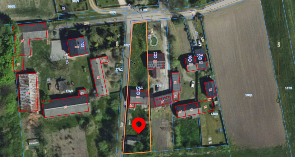 Dodatkowo na działce znajdują się drewniany dom i stodoła – przeznaczone do rozbiórki.