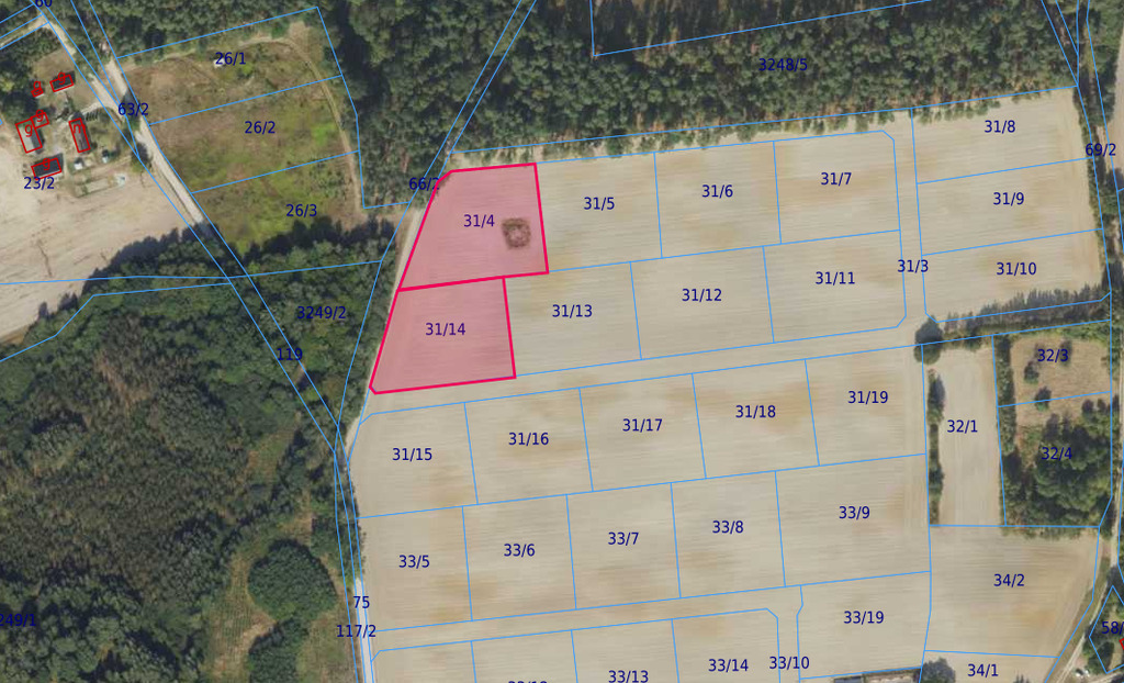 - Działka nr 31/4 – powierzchnia 3432 m².