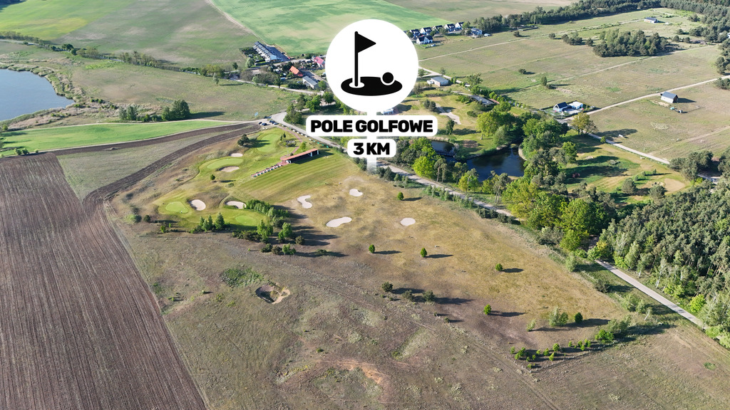 • Pole golfowe Trzaskowo Golf Club: profesjonalne pole golfowe z akademią, driving range oraz restauracją, położone w odległości około 3 km od działek.