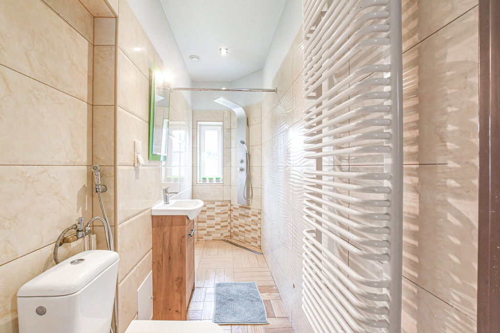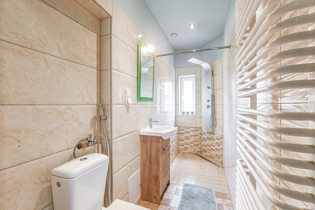- Układ pomieszczeń: Mieszkanie składa się z trzech przestronnych pokoi, oddzielnej kuchni oraz łazienki wyposażonej w prysznic.