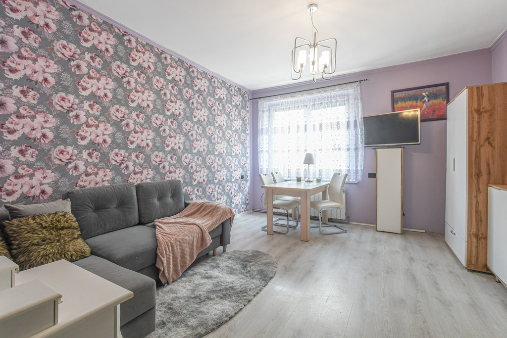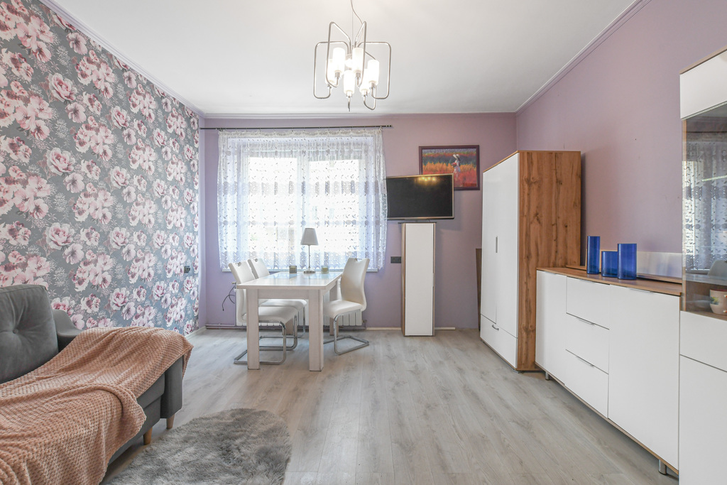 - Stan techniczny: Nieruchomość wymaga odświeżenia, co daje nowym właścicielom możliwość aranżacji wnętrz według własnych upodobań. Mieszkanie jest częściowo umeblowane, co umożliwia szybkie wprowadzenie się.