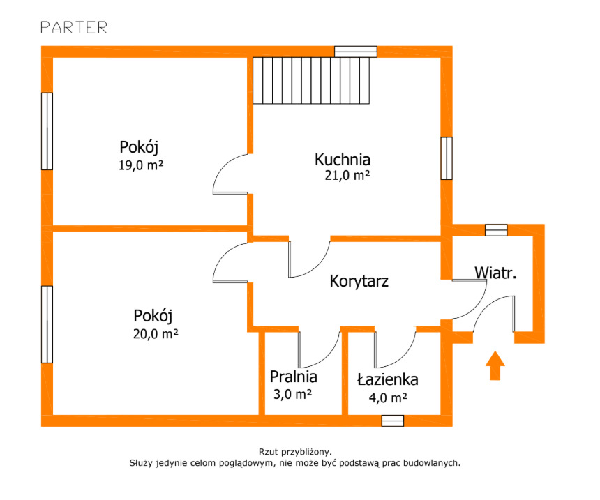 • Pomieszczenie gospodarcze na pralkę(umieszczony również  bojlerem na wodę)