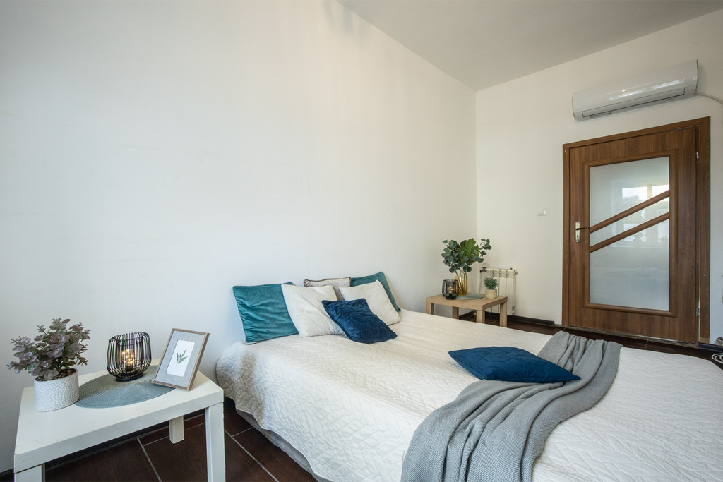 Mieszkanie wyposażone jest w okna PCV oraz metalowe drzwi wejściowe zapewniające bezpieczeństwo i odpowiednią izolację. Ogrzewanie realizowane jest za pomocą klimatyzacji z funkcją grzania, co umożliwia precyzyjne zarządzanie temperaturą przez cały rok, natomiast ciepłą wodę zapewnia bojler elektryczny o pojemności 100 l.
