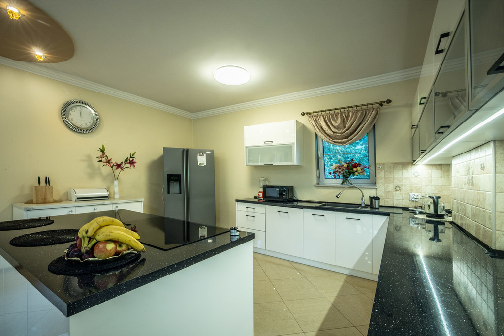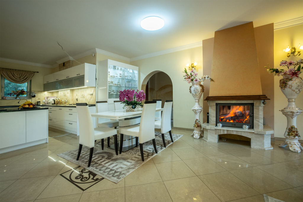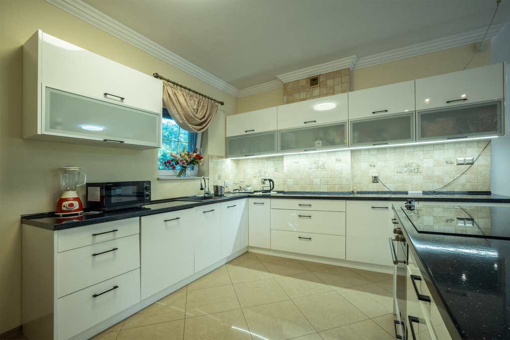 Dom położony jest w Kociołkach w pobliżu Pabianic. Okolica charakteryzuje się piękna zielenią oraz niezwykłym spokojem wokół. Jednocześnie nieruchomość leży w bardzo dobrze skomunikowanym miejscu. W pobliżu znajdują się sklepy oraz szybko rozwijające się Pabianice, w których znajdziemy wszelkie potrzebne punkty usługowe. Kolejną zaletą jest szybki dojazd do Łodzi.