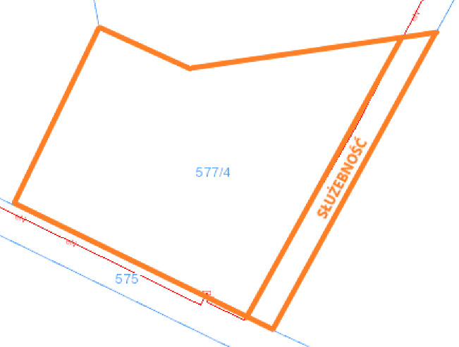 Z prawej strony działki znajduje się wydzielona służebność o powierzchni ok. 150 m², która znajduje się poza ogrodzeniem działki i nie ogranicza komfortu użytkowania ani możliwości zabudowy ogrodzonej części terenu.