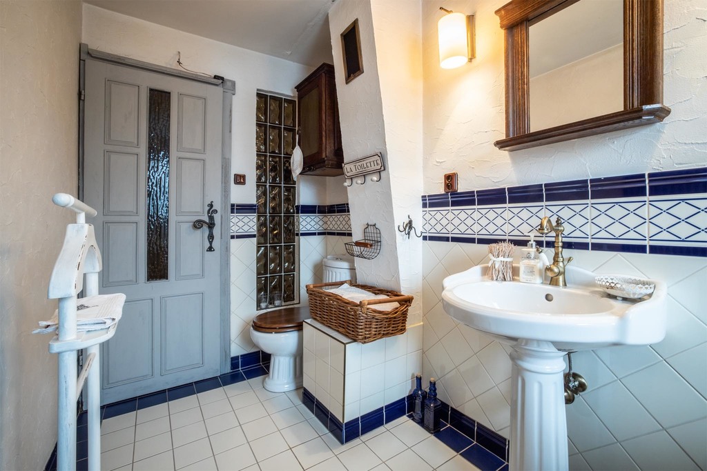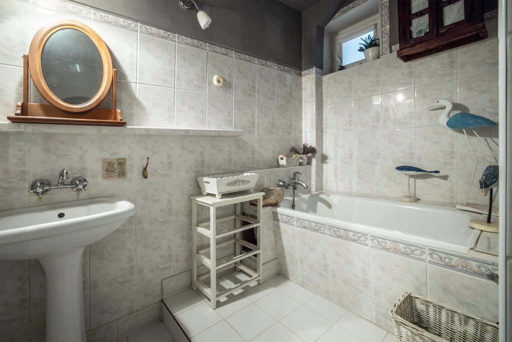 Dom oferuje przestronne i jasne pomieszczenia. Na piętrze znajduje się salon, dwie osobne kuchnie, dwie sypialnie, gabinet, dwie łazienki, osobną toaletę oraz na parterze pokój z łazienką.