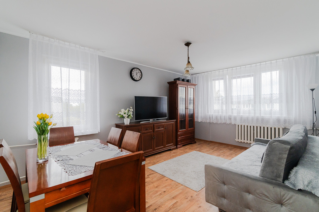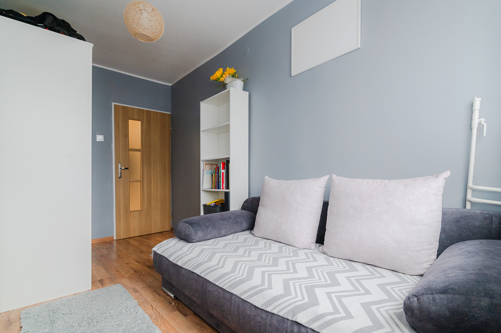 - Przemyślany układ: Dwa niezależne pokoje dają swobodę. Sypialnia to Twoja intymna oaza, a salon – centrum relaksu.