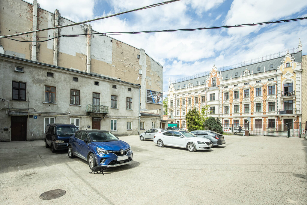 Lokalizacja – ul. Jaracza 41, Łódź Mieszkania znajdują się w ogrodzonym kompleksie kilku kamienic z zamykaną bramą, monitoringiem oraz wspólnym dziedzińcem.