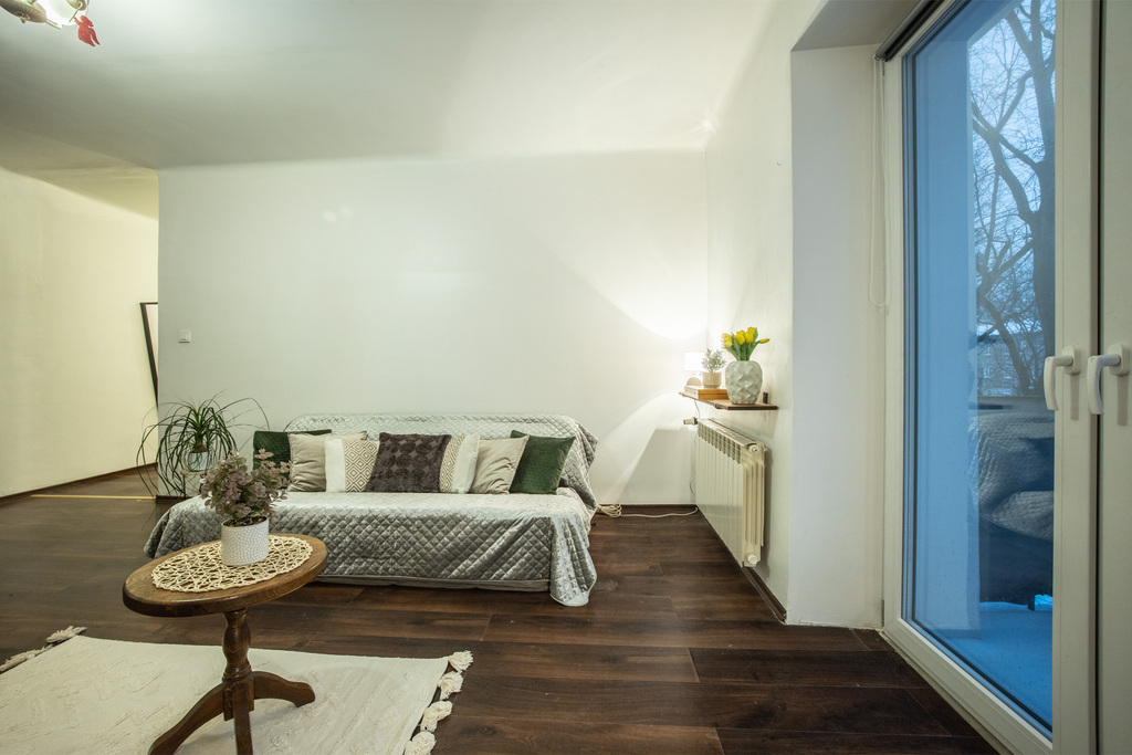 Mieszkanie posiada ustawny pokój, w którym bez problemu zmieścisz wygodną strefę dzienną i miejsce do pracy lub relaksu.