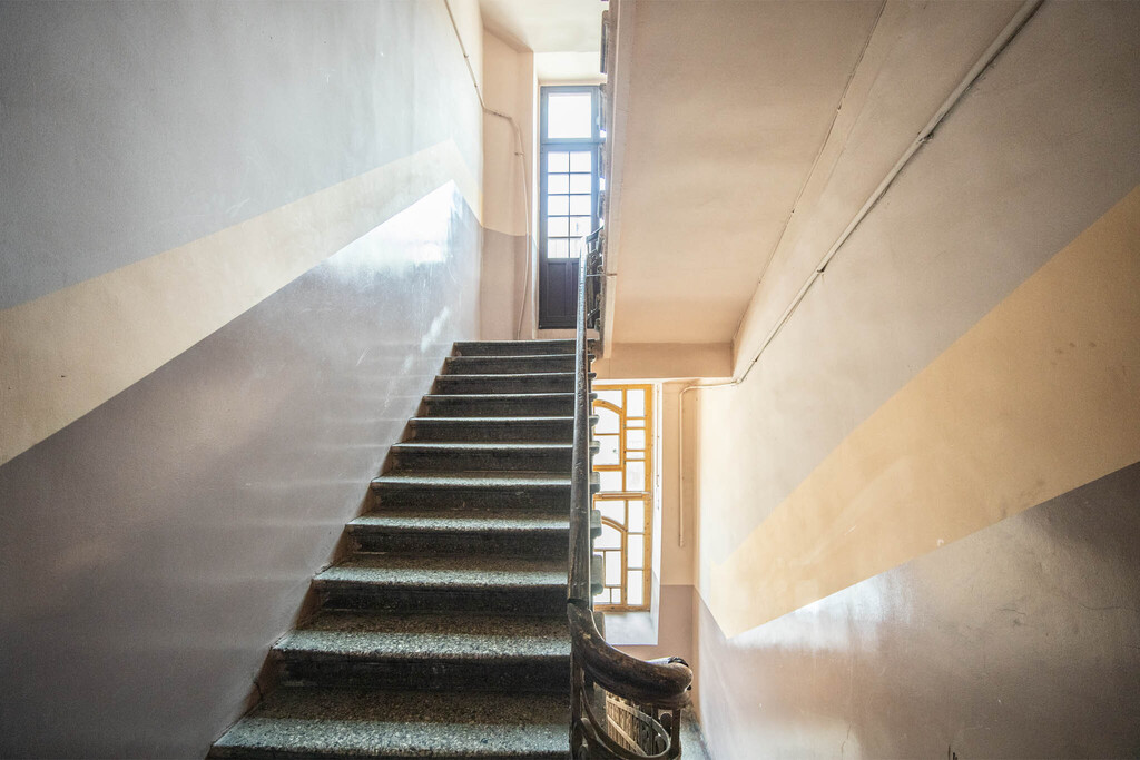 obecnie 4 pokoje, kuchnia, łazienka, przedpokój. Ogrzewanie gazowe. Mieszkanie w tym samym pionie co powyższe, również można po remoncie uzyskać 5 niezależnych pokoi, widną kuchnię i 2 łazienki, przedpokój. Możliwe antresole w pokojach.