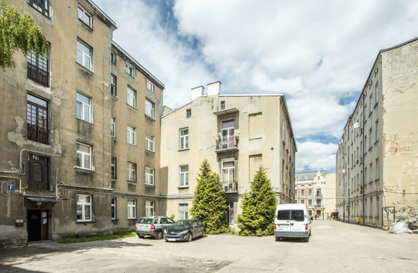 Lokalizacja – ul. Jaracza 41, Łódź Mieszkania znajdują się w ogrodzonym kompleksie kilku kamienic z zamykaną bramą, monitoringiem oraz wspólnym dziedzińcem.