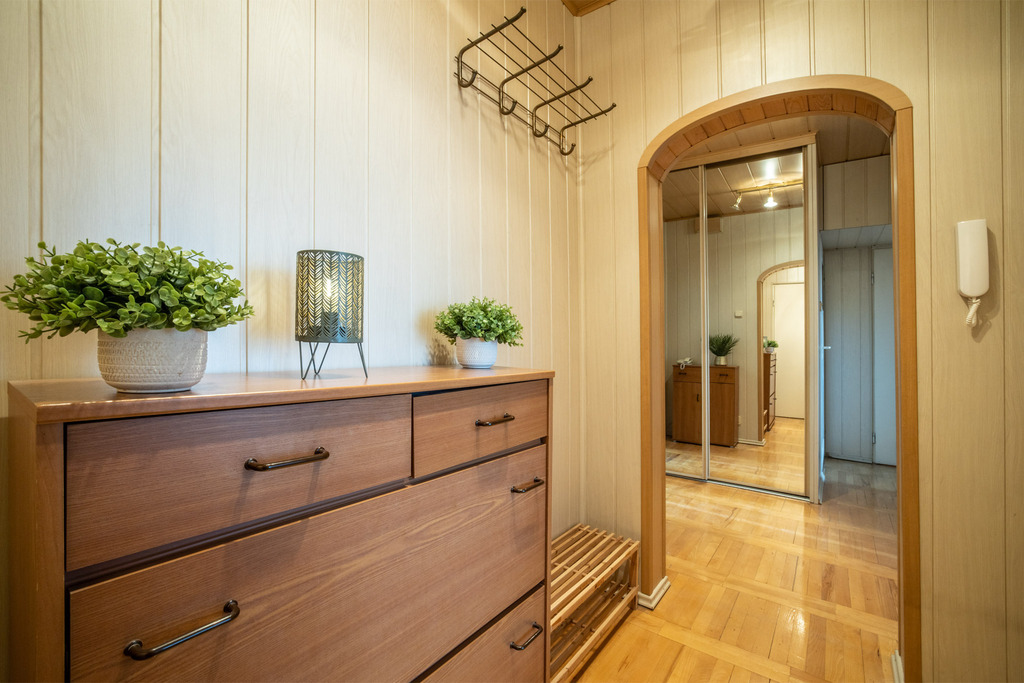 Przedpokój z szafą w zabudowie to dodatkowa przestrzeń na przechowywanie oraz wygodny hol, który nadaje mieszkaniu klimat przytulności.
