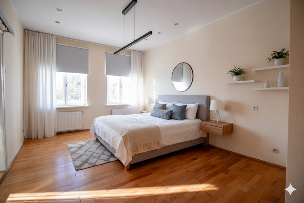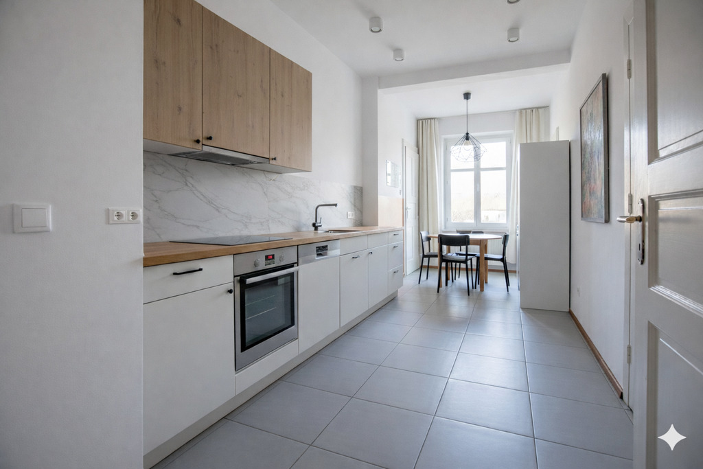 Prezentowane zdjęcia zostały przerobione w celu wizualnego pokazania potencjału wnętrza oraz możliwego efektu końcowego aranżacji. Stanowią one inspiracje i przykład, jak mieszkanie może wyglądać po wykończeniu lub odświeżeniu, a nie jego aktualny stan.