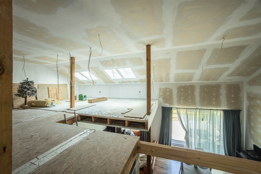 - Antresola z widokiem na salon – wyjątkowy efekt przestrzeni i światła.